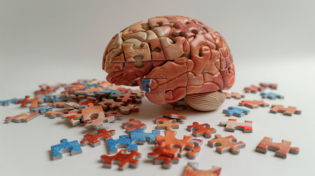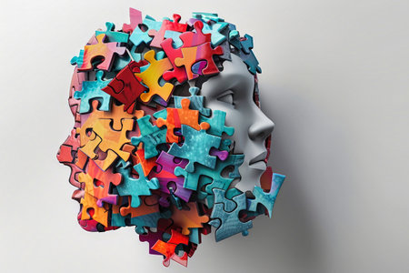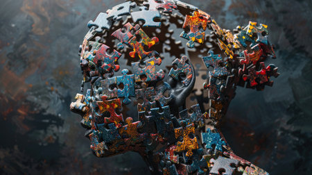 Human head silhouette composed of individual puzzle pieces representing mental health