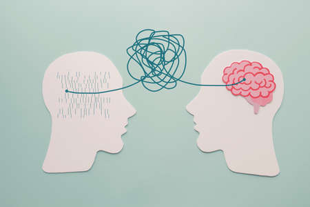 Paper heads and disorder brain, world mental health day, Alzheimer and Psychology concept