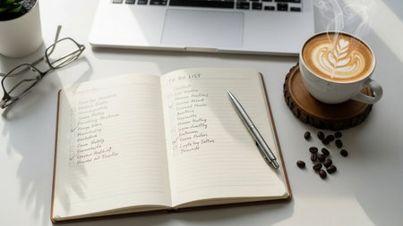 To-Do List Notebook with Coffee, Pen, and Laptop for Planning and Productivity