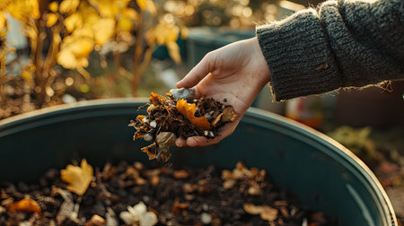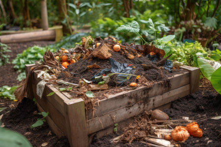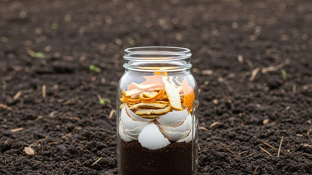 AI Generated. Recycling food scraps into compost urban garden closeup nature growth