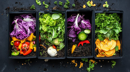 Vibrant and fresh raw vegetables in composting containers highlight the beauty of healthy eating and sustainable gardening practices for eco-conscious individuals.