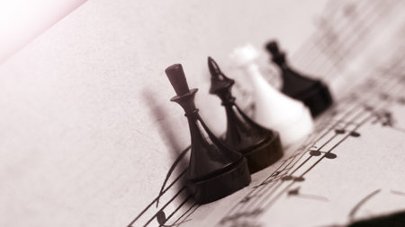 Mini chess and music paper so close