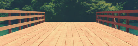 Wooden bridge with planks and railings in a natural setting for outdoor activities