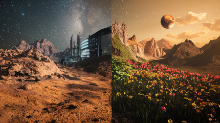 Contrasting Landscapes An Intriguing Journey Between the Vastness of Space and Lush Nature