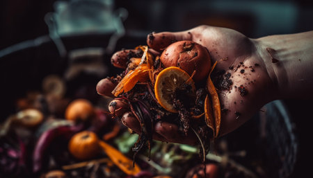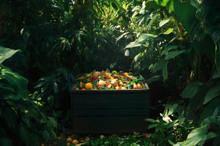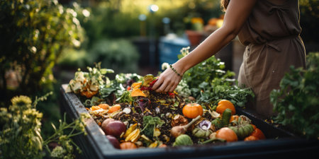 AI Generated. Recycling food scraps into compost urban garden closeup nature growth