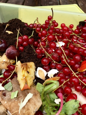 Organic food leftovers. Concept Organic waste, clean environment.