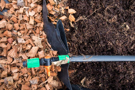 organic compost heap. fertilizer production for soil cultivation in agriculture industry