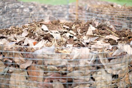 Compost bin in the garden. Food biodegradable waste is composting and recycling in organic fertilizer for soil.