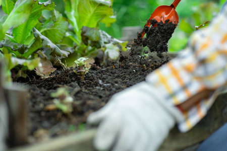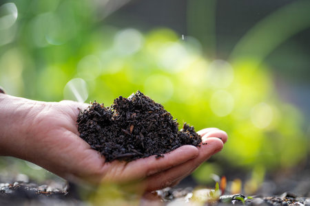 organic soil fertilization to improve soil structure and preserve the ecosystem, selective focus