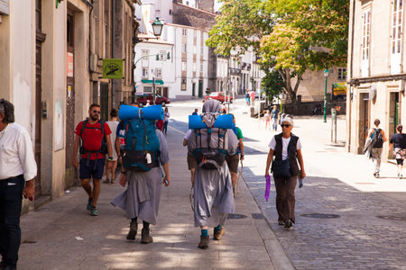 SANTIAGO, SPAIN - AUGUST, 17: Nuns pilgrimn go to the Santiago cathedral, Way of St. James on August 17, 2016 on August 17, 2016