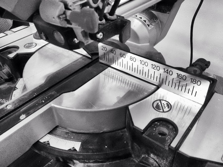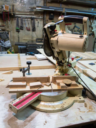 Miter saw in the carpentry workshop.