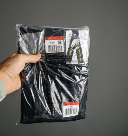 Male hand holding new Nike Flex shorts with dri-fit technology