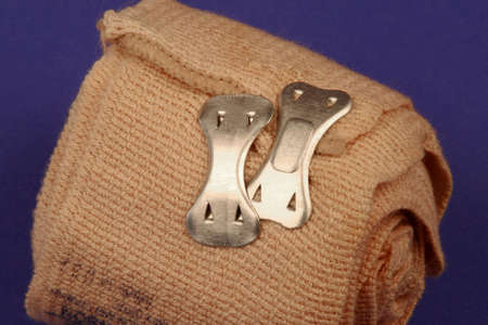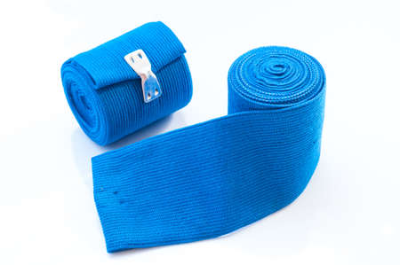 elastic roll gauze bandage hold in hand with adhesive for first aid compress care for accident with release
