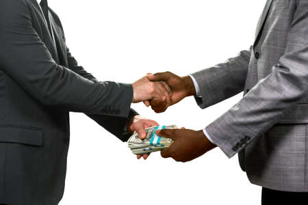 Close up of Hand of Businessmen Giving Dollar to another Person