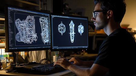 A creative professional engrossed in 3D modeling at home showcasing digital innovation.