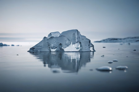 Stunning Arctic Ice Floes and Calm Water Reflections Showcasing Climate Change Effects on Nature