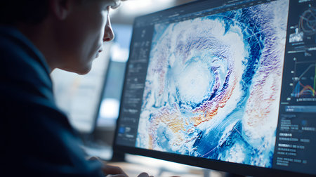 A satellite data map weather visualization storm pattern meteorology climate analysis earth observation data scientist research monitor computer