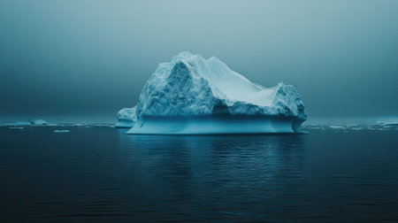 A vast iceberg floating in deep blue waters, symbolizing hidden dangers and unseen threats.