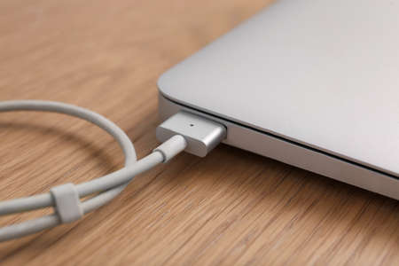 close-up cable data convert to laptop computer new modern technology transfer connect