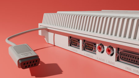 Simple laptop computer VGA video output connector, monitor connection port object macro, detail extreme closeup, frontal shot, nobody. Old legacy video outputs, obsolete dated retro technology concept