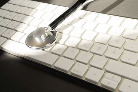 Stethoscope on a computer keyboard