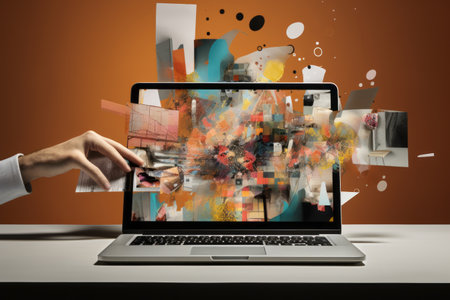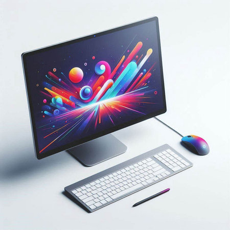 A striking image of a computer screen displaying a graphic design software interface, with vibrant colors and shapes being manipulated in real-time