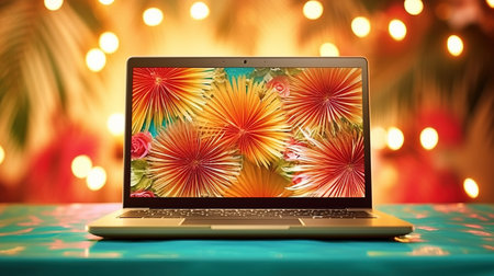 Laptop on colorful abstract background