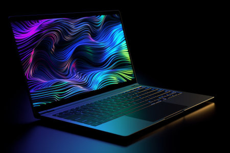 Laptop With Colorful Wave Digital Screen