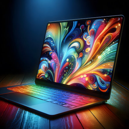 a laptop with a colorful screen.