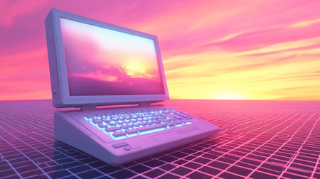 laptop computer on the background of the sunset. 3d render