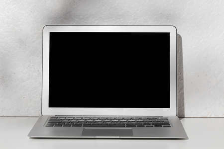 Computer laptop with blank screen isolated on white background. Empty display ready for your webpage or design.