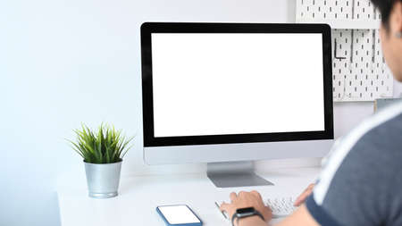 Workplace mockup concept. Mock up modern home decor desktop computer.Mockup desktop