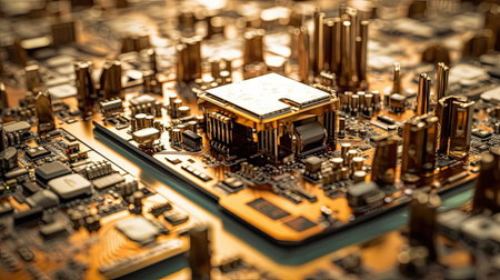 Close-up of electronic circuit board with processor