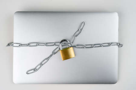 Padlock with chain on a laptop computer. Cyber security abstract concept.