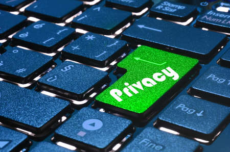 close-up of finger pressing key labeled PRIVACY on computer keyboard