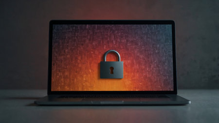 Laptop showing a golden padlock symbol, illustrating data protection and digital privacy