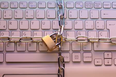 closed padlock on the laptop keyboard data protection concept internet censorship. High quality photo