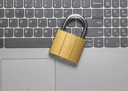 Laptop with a locked screen. Minimal abstract cyber security concept. Copy space.