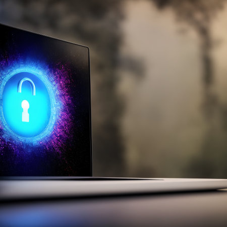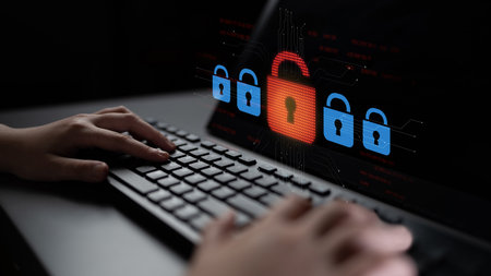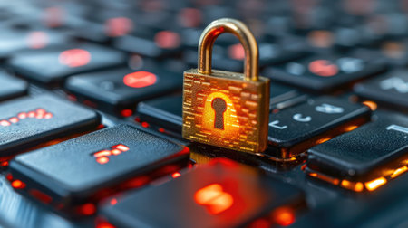 Glowing lock symbol on a laptop keyboard represents digital security and privacy in a modern technology environment, highlighting the importance of data protection.