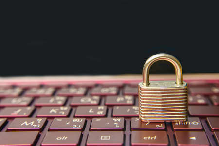 The silver padlock on keyboard laptop. The computer is cyber security.