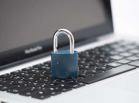 Computer protection concept, internet security. Lock on keyboard laptop
