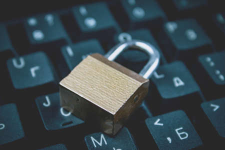 closed padlock on the laptop keyboard data protection concept internet censorship. High quality photo