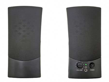 These sleek speakers provide powerful audio output, ideal for personal computers and enhancing multimedia experiences. Perfect for home or work use.