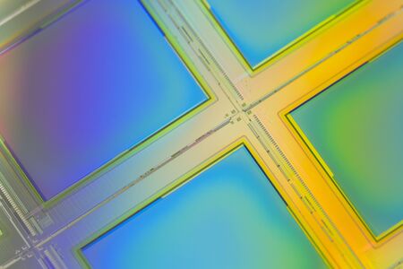 Macro of Silicon wafers Chip Technology Background in Rainbow colors