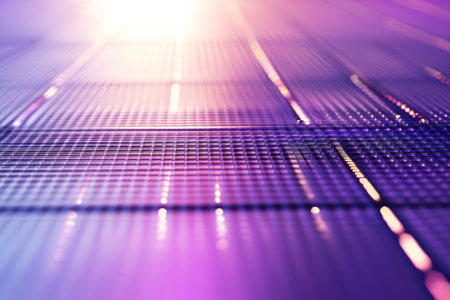 A detailed look at solar panels showcasing their textured surface and shiny photovoltaic cells as sunlight reflects off them creating a shimmering effect