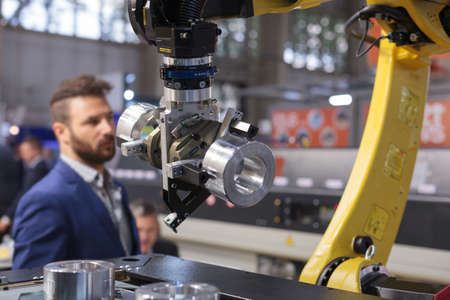 Poznan, Poland 01 Sep 2021: ITM Industry Europe. Robot arm in technology process, automatic industrial robot.