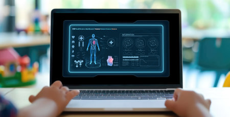 Medical science technology and futuristic healthcare virtual computer software analyze human health and diagnose disease for doctor data and medical research. brisk
