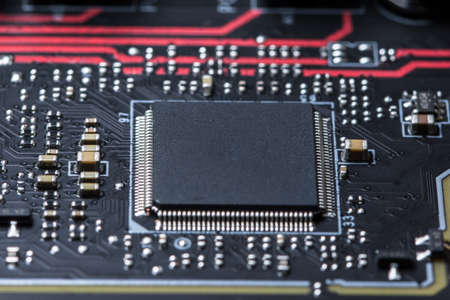 Close-up of electronic circuit board. Electronic computer hardware technology.