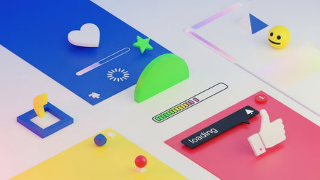 User interface with social media icons. 3D rendering. Neon colors