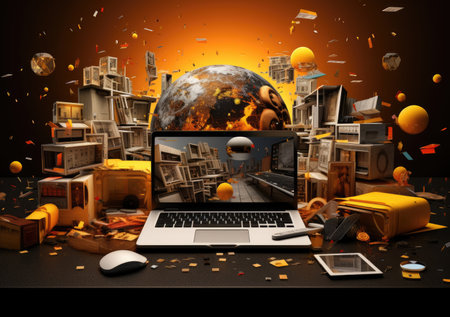 Exploring Boundaries: A Vibrant Collage of Hand, Diagram, and Laptop Depicting a Modern Art Composit